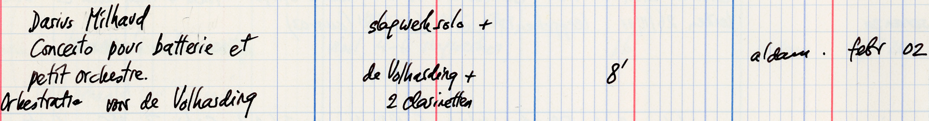 - Concerto pour batterie et petit orchestre : voor slagwerksolo + de Volharding + 2 klarinetten
