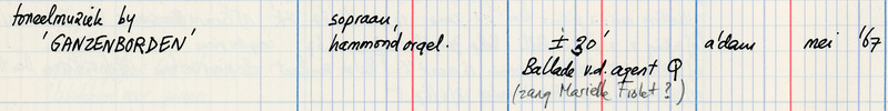 | Toneelmuziek bij 'ganzenborden' : voor sopraan, hammondorgel | manifestation |