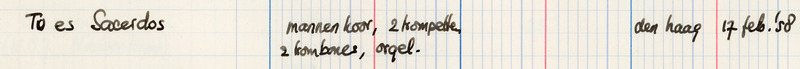 - Tu es Sacerdos : voor mannenkoor, 2 trompetten, 2 trombones, orgel