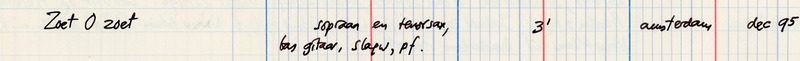 - Zoet o zoet : voor sopraan, tenorsax, basgitaar, slagw, pf